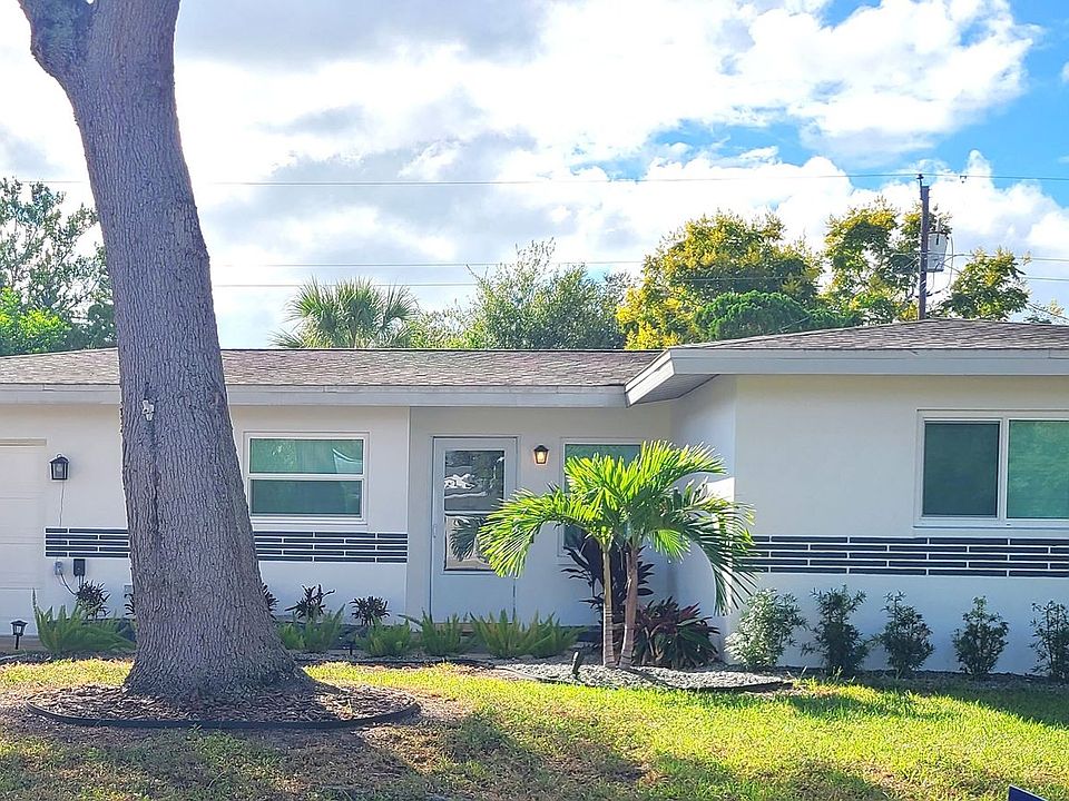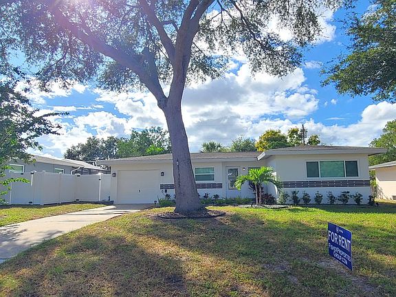 **PLEASE respond electronically, do not call, for best response** Professionally managed, available now. No pets please. This clean, cute 2/1 house in the Forrest Hill neighborhood lives much bigger than its footprint and is move-in ready! The home has many modern upgrades, with some of the charm remaining of a Florida vintage house. New modern windows, fans, plantation shutters, ALL new bathroom with modern tile and vanity. A galley-style kitchen with plenty of cabinets and gas cooking stove top. Laminate wood flooring in the main areas and carpet in the two bedrooms. A one car garage is attached, which also houses the laundry station with washer and dryer included. Microwave and stand-alone kitchen unit are for your convenience use if you wish. The home sits on a nice lot with front and back yards, a sunroom and a large rear patio for many options to enjoy the outdoors throughout the year. Lawn service is included! Close to get to the beach and lots of shopping nearby. Plumb, Oak Grove, and Clearwater School districts.