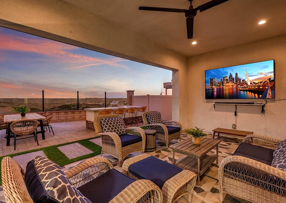 Back on the Market! This gorgeous, multi-generational home is a must-see, as it is located on one of the few premium panoramic views lots in The Village of Montecito, the most desirable and sought-after community in Otay Ranch and Chula Vista! Built in 2021, this rarely-on-the-market Plan 3 in Bella Sitia is not only the largest model in the development with 3 en suites, but it is located on one of the rare, superior canyon-view lots, with unobstructed views to the southwest. As you walk through the foyer, you will immediately enjoy the modern farmhouse feel this home conveys. From the beautifully designed entry flooring design, to the gorgeous crystal chandelier, to the open concept floor plan! Immediately to your left is the first of three en suites, as well as a separate powder room. The great room consists of a sitting area next to the grand staircase, a formal dining room featuring a beautiful sputnik chandelier, the family room, and a kitchen that is to die for, with upgraded Dunham Zulu tile throughout. The first thing you will notice in this chef’s kitchen is the upgraded, waterfall island! Additional features include upgraded Whirlpool appliances, ample storage, designer faucet, cabinetry hardware and pulls, and disappearing patio doors to further enhance your view and al fresco experience. You can’t miss the butler’s pantry which features additional storage and an oversized walk-in pantry which is every homeowner’s dream! The grand staircase and the entire second floor feature Bel Air Riviera luxury plank vinyl flooring. As you arrive upstairs, you will immediately enter the loft, which features upgraded lighting and window coverings. As you continue down the hall, you pass the second of three en suites, as well as two additional bedrooms. All of the bedrooms feature upgraded lighting and walk-in-closets. The master bedroom is stunning, boasting sweeping 180 degree views, and features a private primary retreat/sitting area. The bathroom includes a freestanding designer soaking tub, oversized shower with double doors, and an oversized custom built-out his and hers closet. The backyard is an entertainer’s dream! Not only does it have a private California room with designer tile, but the unobstructed views reaching through to Mexico are amazing! Additional features include a fire pit, artificial turf, and designer tile. The 3-car garage features epoxy flooring, a state-of-the-art water filtration system and tankless water heater. And the home has owned solar! Minutes from the international border, and 20 minutes from downtown San Diego, The Villages of Montecito is a homeowner’s paradise. The development includes a large lap pool, parks and playgrounds, gym, award winning schools, and walking distance to restaurants! The Days on Market for this home is incorrect, as is adding days from the previous listing.