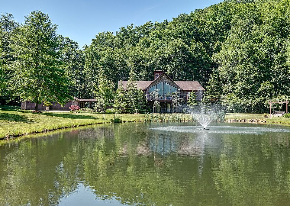 Rare opportunity to own this custom built home that features fine and distinctive wood finishes,massive wooden beams,open floor,Asian walnut floors,soaring vaulted ceilings,wall of windows to enjoy the mountain views,two 2-sided stone fireplaces highlighting the relaxed ambiance.Exquisite kitchen with every amenity a top chef would want.Kitchen opens to a flowing back deck overlooking the creek and waterfall.Two master suites with ensuite baths with granite,tile showers,jetted tubs.Finished lower level with custom bar,entertainment area.Surrounded by a park like oasis with creek,waterfalls,pond and perennial gardens.Four car garage is 1544 sq ft.Welcome to this truly impressive home!