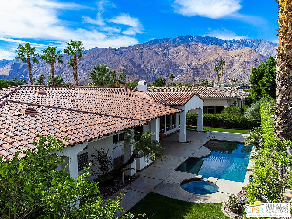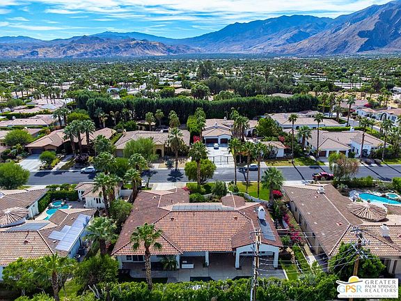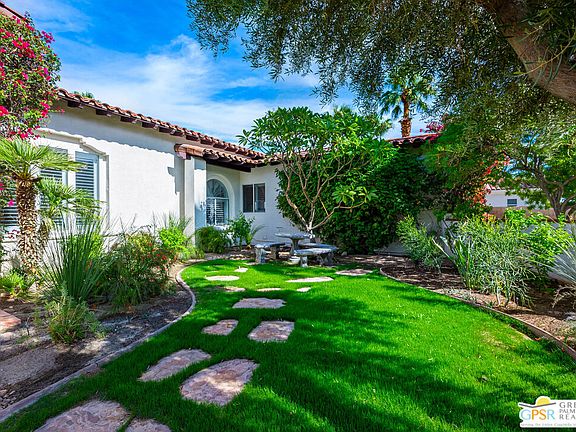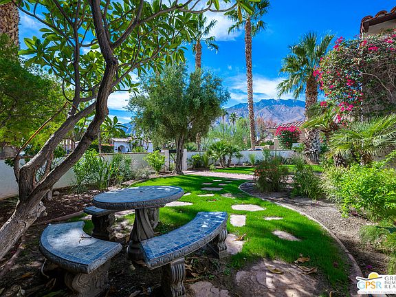 Behind the impressive wooden gates of Colony at El Mirador, you'll find a private oasis nestled in the heart of Palm Springs's famed Movie Colony. This enclave of only 35 custom and semi-custom estate-sized homes boasts incredible San Jacinto Mountain views, lush landscaping, and close proximity to all of Palm Springs's best destinations. 1244 Verdugo Road sits on a 15,000+ square foot lot and houses a Spanish-inspired 3,085 square foot home with 3 bedrooms, 3 bathrooms, and generous-sized living spaces with 10-foot ceilings. Upon entering the gated courtyard, you're greeted with a private lawn with sitting areas and a water feature. Once inside, the openness and natural light are evident as you wander through the formal living, dining, and den with a custom built-in entertainment system and a granite-clad wet bar with a wine refrigerator. A massive center island, perfect for gatherings, anchors the large chef's kitchen. These rooms look out into your private backyard with a pool, spa, outdoor kitchen, water features, and citrus trees. The oversized hallways lead you to generous-sized bedrooms and a laundry room with a utility sink. The primary suite feels like a sanctuary with its large en-suite bathroom with dual sinks, large walk-in shower with a separate large soaking tub, and makeup vanity. The re-imagined closet (designed by California Closets) perfectly utilizes the space and offers ample storage. This home also has an oversized 3-car garage and a new solar lease at $291/month. Homes in Colony at El Mirador rarely come on the market. Now is your chance to experience gated private luxury living in the Movie Colony on FEE land with low H.O.A.'s *** Why aren't you living here yet? ***