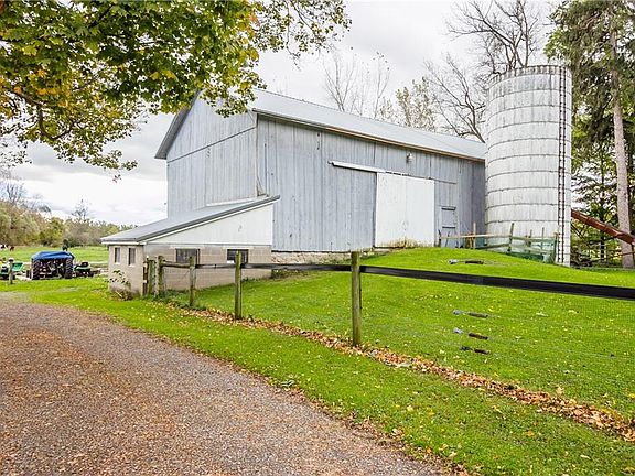 "Farmette" on 5.20 acres. Country setting conveniently located 10 minutes from Eastview Mall. Kitchen & living area with a wood stove combine to make the perfect gathering area. Separate dining room, den, office, and additional living room. Updated upstairs bathroom. Large barn with a work-shop & several horse stalls.