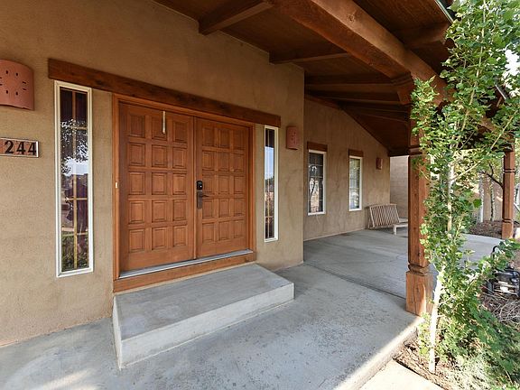 PRICE REDUCED TO SELL! Dramatic Santa Fe style custom home very close to the Reservoir. Hand-carved Vegas, posts and corbels. Recessed lighting, 10ft ceilings up and 9ft ceilings in the basement. Impressive entrance w/ custom tile floors throughout the welcome area, living room, dining room, kitchen, guest bath and main level laundry. Fun art niches. Custom kitchen w/ granite counters, granite island, maple cabinets, Jinn Air gas range top w/ grill, downdraft range hood and pantry. Pull outs in most cupboards. Natural Gas. Finished basement except for 26x19 room for storage. Theater room and wet bar. Huge walk-out master bedroom suite with walk in his and hers closets, 5 piece bath with split vanity, jetted garden tub and separate water closet. Gas log fireplace, courtyard. Guest room with full bath & private entrance. Oversize garage