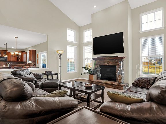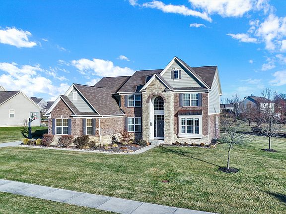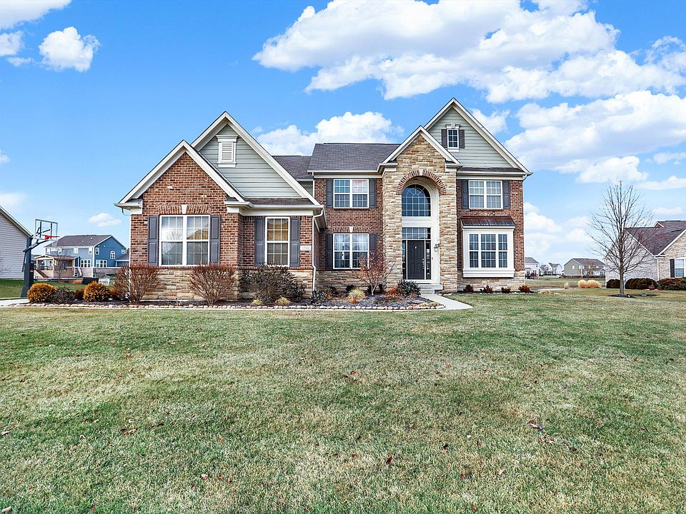Welcome to this meticulously maintained brick home boasting 4 bedrooms and 4 1/2 bathrooms. Nestled on a cul-de-sac, this sprawling 1/2 acre exudes elegance and functionality at every turn. As you step through the impressive two-story entryway, you are greeted by the grandeur of vaulted ceilings elevating the sense of space. Dual staircase adds a touch of architectural finesse, guiding you seamlessly through the home's well-designed layout. Owner's suite is complete with shower, soaking tub, dual sinks, walk in closet, and linen closet. The heart of this home lies in the gourmet kitchen, where an island and ample granite countertop space harmonize seamlessly. Open concept flows effortlessly into the inviting living spaces while also accommodating the professional with a dedicated office offering a quiet and productive workspace. Imagine hosting backyard gatherings and watching beautiful sunrises and sunsets on the expansive split level stone terrace, complete with firepit, where relaxation meets outdoor entertainment. Full basement beckons with ideal space to pursue your fitness goals in the workout room and ample space for entertainment including a ceiling mounted projector. Basement is also plumbed for a wet bar, presenting an opportunity to customize and elevate this space further. For the tech-savvy homeowner, a 400-amp service ensures that this residence is equipped to handle the demands of modern living including two Tesla charger hook ups in the 3 car garage; not only a haven for your vehicles but also a hub for innovation. Come and experience the epitome of refined living in this meticulously crafted residence that seamlessly combines comfort, style, and functionality. Your dream home awaits.