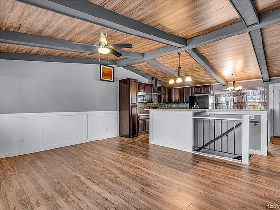 Welcome to this ranch style home with a newly remodeled main level. This 3-bedroom home features two remodeled bedrooms with new texture, paint and laminate flooring and a remodeled primary bedroom with new texture, paint and laminate flooring. The primary bathroom has a new shower, flooring and vanity. The kitchen features an open floor plan with granite counters, a beautiful glass backsplash, laminate wood flooring, a wine cooler and stainless-steel appliances. The home also features a living room with a great gas fireplace for cold winter nights and a room heat pump for heat and air conditioning. Wood ceilings and beams in both the kitchen and living room. Home will be sold with a flat screen TV in the living room. New carpet in the large basement family room, ¾ bathroom and a non- conforming bedroom (no window). New class 4 roof was installed on 9/13/24. Vinyl siding was installed about 6 years ago and a new sprinkler system valve box last year. The spacious backyard has a dog run, fully fenced yard and 2 storage sheds. RV parking behind fence on side of home. Home is close to schools, shopping and parks with easy access to I25 and DIA. Light rail and bus routes are very close. Don't miss your opportunity on this great home. If you previously viewed this home, please come back for a second showing to see all the very recent improvements that were done.