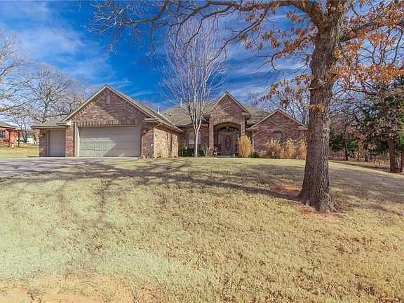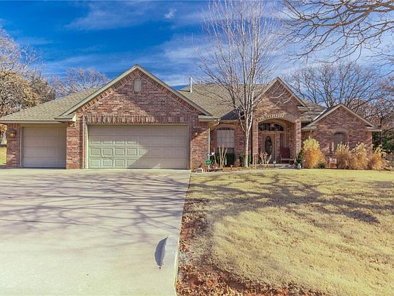 GATED COMMUNITY; SMALL ACREAGE ! Home is located on a treed lot of .73 acres to enjoy the beauty of nature while having access to I-35 and is just minutes from the new Guthrie Elementary that will open September 2018. Home offers 3 bed, 2 bath, 3 car garage, and study. Kitchen island, farm sink, and has electric and gas hookup for stove and dryer. Lots of cabinets in kitchen. Updates include:new hot water tank, newer gas stove, microwave, and dish washer. Dual fuel on stove. Watch the wildlife (deer, turkeys) from your covered back patio. Access to back patio room from dining or master bedroom.