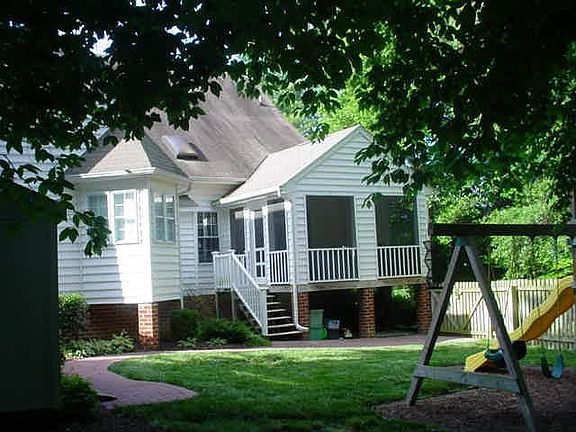 This is a lovely home with many updates which include: new HVAC in 2009, all wood floors, downstairs, maintenance free front porch, screened in back proch with ceiling fan, and a double-widge concrete driveway. There is a fenced back yard with play set and shed with electricity. The downstairs master has double doors to the large master bath. Attractive landscaping with irrigation system.