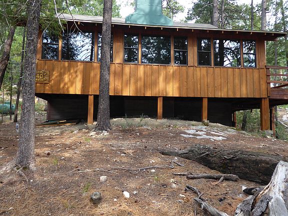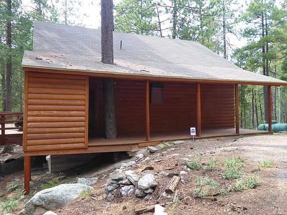 Beautiful log sided cabin in the woods, in the desired neighborhood of Loma Sabino pines with a large lot of 15,869 sq ft and plenty of common area Ponderosa pines. Two bedrooms with a large loft, cabin sleeps 9! One full bath, and one 3/4 bath. Large living room with an Arizona room with new windows for plenty of light. Outside deck to sit and watch the neighborhood wildlife. Wood burning fireplace, security shutters, storage room with a washer and dryer. This cabin backs up to Forest service land and is in a very quiet area. Year round access. Perfect cabin to get away from the hussle and bustle of life in the cool mt air. This cabin wont last long on the market.