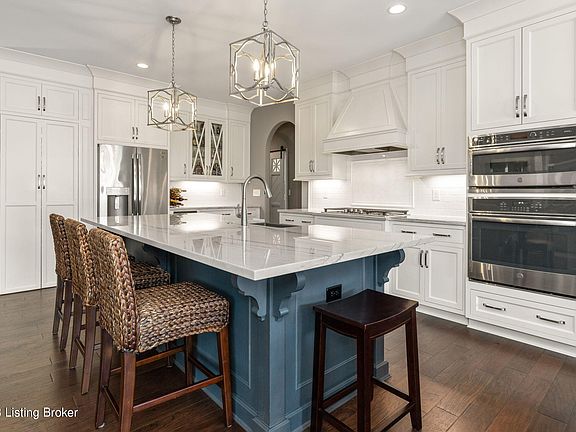 Nestled within the prestigious North Oldham School District, this remarkable ranch-style home offers an expansive living space with over 5,700 square feet. The backyard seamlessly merges with the neighborhood conservation area, providing abundant privacy and picturesque views while indulging in the custom-built pool and outdoor living oasis. Every aspect of this home has been thoughtfully designed to cater to first-floor living while offering ample space for both family and guests. As you step inside, a grand foyer greets you, leading to the inviting living room with a coffered ceiling. The eat-in kitchen boasts stainless steel appliances and gracefully transitions to the breathtaking outdoor living space. Prepare to be enchanted by the captivating pool, providing a tranquil retreat for relaxation and enjoyment. The primary bedroom impresses with its generous proportions and trey ceiling, while the custom-designed primary bathroom showcases a lavish oversized shower. Additionally, the primary closet offers convenient access to the adjacent laundry room. The East wing of the home offers two well-appointed bedrooms sharing a spacious jack-and-jill bathroom, featuring a luxurious walk-in shower. An office and a powder bath complete the first floor. Descending to the basement, wide stairs accommodate easy mobility. Custom-built shelving at the bottom of the staircase adds a touch of sophistication. The lower level boasts an expansive living area, perfect for entertainment and relaxation, complete with a well-equipped kitchenette. An additional bedroom, bathroom, and laundry room in the basement cater perfectly to guests or in-law accommodations. Finally, an extra bonus room currently used as a bunk room, offers limitless possibilities. The four-car attached garage features a separate bay with a partitioned wall, an ideal setup for car enthusiasts or a dedicated workshop. Schedule your private showing today.