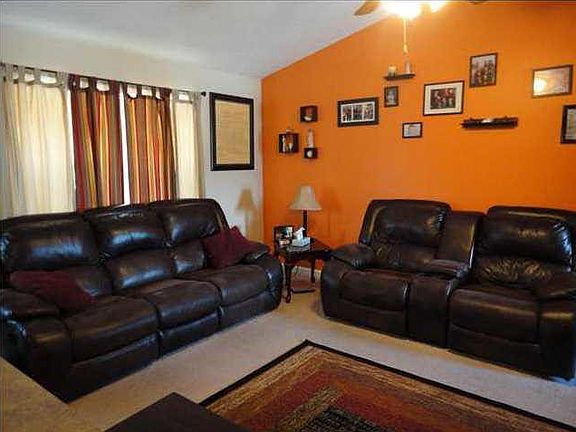 Great one-owner ranch home in Stonecrest Subdivison. This 3 bedroom, 2 bath home was built by Eagle Construction in 2007 and offers over 1200 square feet with many upgrades. Kitchen includes cherry cabinets, satin nickel hardware, a counter bar great for a couple of barstools, and black appliances that are all included in the sale of the home. (Dishwasher replaced one year ago). The kitchen and dining area are open to the large great room with cathedral ceilings. There is also a sliding door that opens to a nice sized patio and large fully privacy fenced back yard. Master bedroom includes a walk-in closet and private full bath with linen closet. The laundry room is located between the garage entry and kitchen and includes a nice pantry area for extra storage space. Other plusses include attic storage space above garage and an ADT Security System that stays with the home.