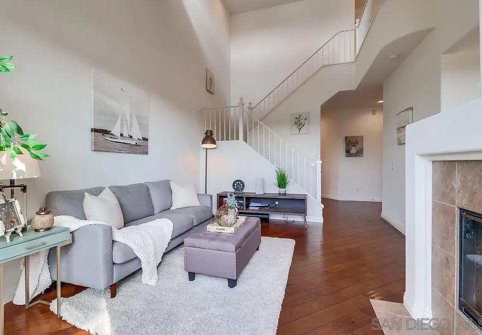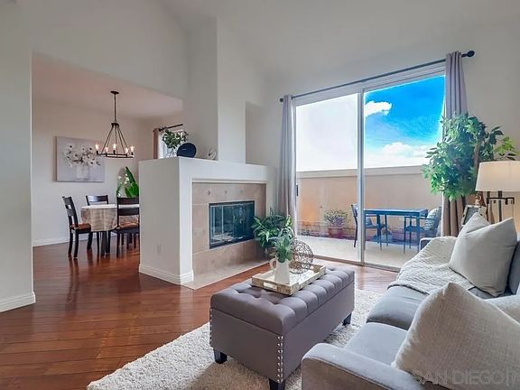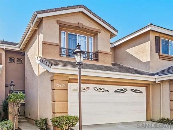 Highest elevation in a sought-after Chateau Village Community with an AMAZING PANORAMIC VIEW and perfect PRIVACY! Enjoy the breathtaking SUNSET VIEW from both downstairs and upstairs! Bright and Airy! Gorgeous wood floor downstairs and a vaulted High Ceiling in the living area with plenty of natural light. Spacious kitchen with granite countertop, new faucet, and all newer SS appliances. New interior paint, new LED ceiling lights, newer A/C, and water heater. Relax in a pebble paved cozy backyard! Community amenities boast a Pool, SPA, Gym, and Tennis Court. Walking to multiple parks, trails, award winning schools, Del Mar Highlands shopping and One Paseo mall! Short access to I-5, 56, 805, Del Mar Beach, and Torrey Pines! You must see this!
