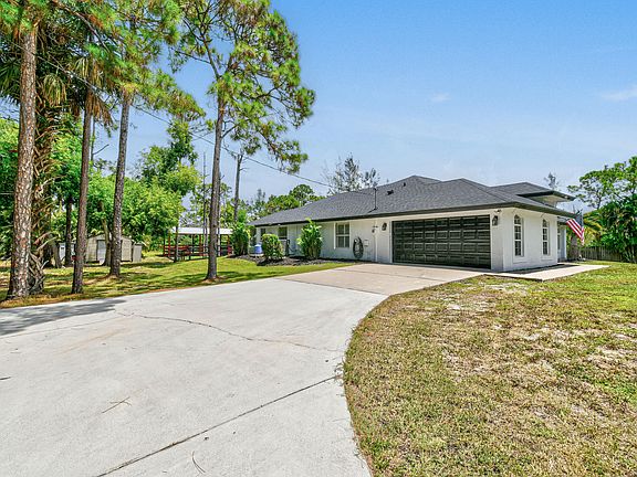 1.29 acres of upgraded Acreage living -- turnkey, private, and equestrian-ready. This CBS 4-bedroom pool home offers a rare combination of land, lifestyle, and location in one of the most desirable pockets of The Acreage. With a brand-new roof, new HVAC system, updated water system, and a refreshed black-and-white exterior, the property delivers immediate peace of mind and long-term value.Inside, vaulted ceilings and wide, connected living spaces create an airy, open feel. The 2020 family room flows into a screened-in pool area with over 1,600 sq ft of covered outdoor living -- perfect for entertaining or everyday relaxation. The pool enclosure features solar-ready heating, a cabana bath, and a lifetime structural warranty. The split-bedroom layout provides privacy, while the primary suite includes dual sinks, a large walk-in closet, and direct pool access.