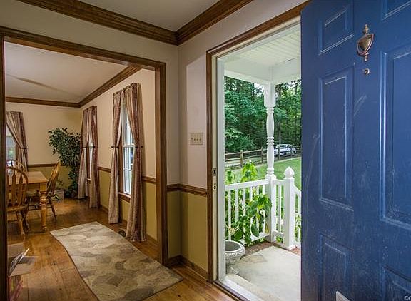 1.3 manicured acres that offer privacy yet with the benefits of a neighborhood and convenient location. Low maintenance vinyl siding, updated/efficient windows, detached 2+ car garage with electricity, large rear deck and fenced yard and detached storage shed. Gourmet eat in kitchen with stainless appliances, gas cook range, tile floor, tile backsplash and GRANITE counters. Lovely vaulted family room with stone fireplace, ceiling fan, carpet and French doors to rear deck. First floor bedroom with full bath access, formal dining and living rooms all with stunning random width PINE flooring. Upstairs boasts a huge master suite with his/hers closets, ceiling fan, neutral carpet and private master bath. 2 additional bedrooms with large closets, carpet and another full bath round out the upstairs. Large pull down attic storage space. This yard is stunning and has mature trees and flower beds throughout with separate shaded "sitting area" in rear yard. This is a must see!