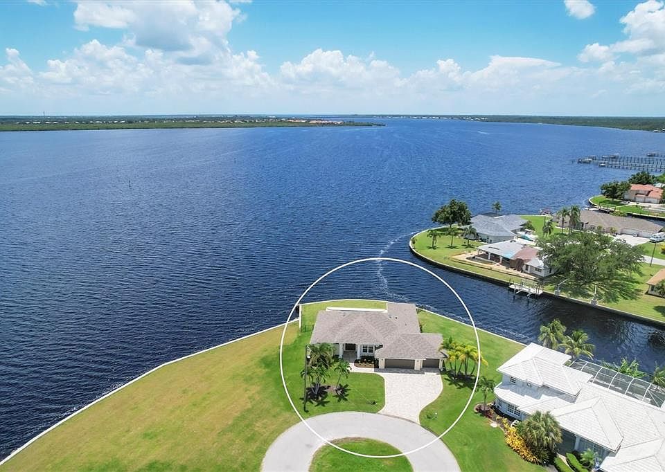 A Boater’s Dream Home Awaits in Gulf Cove! Imagine waking up to magnificent sunrises and enjoying gentle breezes from this tip lot, perfectly positioned on the Myakka River with 180’ +/- linear feet of seawall, per the seller, that provides excellent water views from most every room. Upon arrival you will find the home at the end of cul-de-sac where the 2024 paver driveway, mature landscaping, three car garage and aesthetic architectural designs provide a warm welcome. Step inside where views take center stage in the light and bright open living area with vaulted ceilings, large windows and multiple sets of sliding glass doors. A centrally located kitchen with granite countertops, white cabinets, stainless steel appliances and a stepped up breakfast bar. Having both a formal dining room and breakfast nook area you will always have plenty of space for entertaining. The ensuite master bedroom offers picturesque views through both the large window and sliding glass doors, as well as both a walk-in and reach-in closet. The master bath features a step-in shower, garden tub, and dual sink vanities, making getting ready for your day a breeze. There are two additional bedrooms, one that features double French door entry and a picture window that will allow your guests plenty of space. The guest bathroom has a tiled shower/tub combo and oversized single sink vanity. Built in cabinets in the large laundry room and the garage will give you plenty of space for storage. The outdoor living area is the highlight of this home with endless views over the cageless pool with a black wrought iron fenced backyard, and a large covered patio space with ceiling fans, and pool storage closet for an ultimate relaxation area. This home is packed with upgrades and features, including a 2023 roof with an Owens Corning lifetime warranty and transferable limited warranty, 2023 hurricane-rated garage door replacements, 12 impact windows installed in 2023 with a transferable limited warranty, a 2022 A/C system, Kevlar hurricane curtains for the sliding doors, replaced soffits, gutters, fascia, a freshly repainted pool with a new pump and filter system, security cameras, updated interior paint, enhanced attic insulation, pull down attic stairs, newer carpet throughout, and much more. Gulf Cove is a wonderful community with the option to join the voluntary HOA for a low fee. Enjoy access to the park, which features playgrounds, pavilions, and riverfront seating. Members benefit from fishing off the seawall and using the private boat ramp. From the ramp, it’s just a short boat ride to Punta Gorda’s dining spots and Charlotte Harbor, where you can experience world-class Tarpon fishing or explore the stunning waterways. If you prefer to drive, you'll find a variety of restaurants, shopping, medical facilities, golf courses, nature parks, and two major league baseball spring training stadiums nearby. NOTE: The adjacent vacant lot with a 180’ +/- brand new seawall is also available for purchase to give you over 390’ of waterfront on the Myakka River. Contact us today to schedule an appointment!