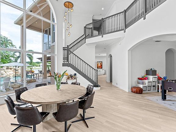 Welcome to this beautiful light-filled 6-bedroom, 4.5-bath seasonal rental offering luxurious comfort, space, and style. Upon entering, a striking floor-to-ceiling rear window greets you, framing the backyard, resort-style pool, and water, filling the home with light and serenity, with abundant space and storage throughout. The first floor features wood-tile flooring, a guest suite with a cabana bath and pool access, and flexible living and dining areas perfect for entertaining. The open family room and breakfast nook flow seamlessly into the gourmet kitchen with a 5-burner double oven, oversized island, walk-in pantry, and backsplash windows that bring in even more natural light. Upstairs, the primary suite overlooks the pool and water and serves as a true retreat, featuring dual walk-in closets, double vanities, spa-style shower, soaking tub, and beautiful designer light fixtures. Additional bedrooms share updated baths, and the laundry room is conveniently located. Outdoors, enjoy a resort-style pool with beach-entry and water feature, covered ultimate outdoor summer kitchen, putting green, and lush bamboo for privacy, with a huge fenced backyard offering abundant space for lounging, playing, and entertaining. The home also includes a 3-car garage for added convenience. Perfect for relaxing or hosting, just minutes from Wellington's equestrian venues, dining, and shopping.