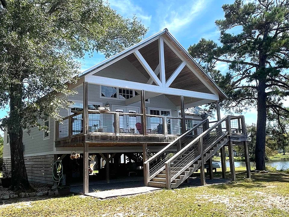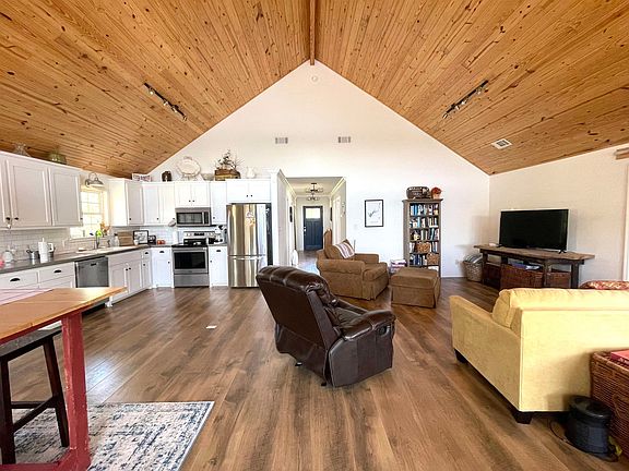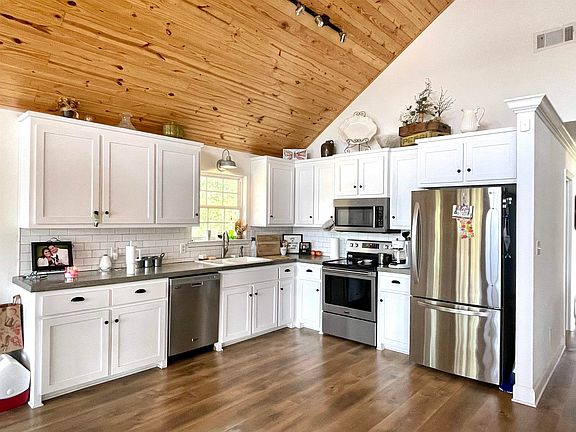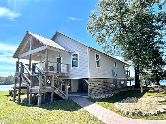 Sit back and relax and enjoy the amazing views! 3 bedroom/ 2 bath home built in 2019 nestled onto a flat lot with some of the most gorgeous views on Pt A Lake. Open floor plan with beautiful wood vaulted ceilings and luxury vinyl flooring. The kitchen has stainless appliances and concrete countertops. The primary bedroom has lake views from every window and the primary bath has a soaking tub with separate shower and double sink. Plus, vaulted wood ceiling and plantation shutters make it feel like a serene retreat. 21 by 24' boathouse with boat slip with lift, water, electricity, and storage! Some other extras include spray foam insulation, PEX water system, security system, plug in for camper, and storm shelter, and lots of storage underneath the home!