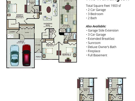 Welcome home to the Huntington in SW Fort Wayne! This gorgeous open-concept ranch boasts 3 bedrooms/2 bathrooms, 9' ceilings, a designer kitchen with granite countertops and stainless steel appliances, a sunroom, fireplace, and architectural trim throughout the home. The private owner's suite features a deluxe bathroom with tiled shower and 5' garden tub. This home sits on a beautiful pond lot. Come see for yourself!