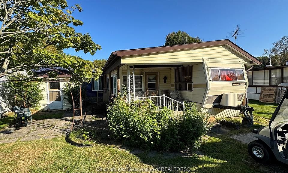 Enjoy your new seasonal cottage life at 92 Skunk Pass in the gated community of Wildwood by the Lake in Morpeth, ON. From the beautiful views, peaceful settings and beach access across the road! There is an array of amenities within the park, including a refreshing pool, a spacious baseball field, a charming pavilion, and sought-after pickleball courts. Enjoy time with family and friends outdoors on the front deck, around the fire or strolling through the park! Lot fees total 3072.01.