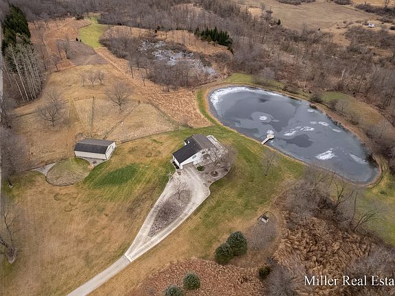 First time on the market is this handsome Barry County country estate. This quality built 3 bed 3 bath home is set on 43 meticulously maintained acres, overlooking a stocked 1 acre pond and trails abound. This home is perfect for nearly anyone. The main floor boasts a nice master bedroom with a large master bathroom, a vaulted living room with a cozy fire place and incredible views that continue through the dining room and kitchen. Upstairs, you will find two bedrooms and another full bath. There is a walk-out basement with ample storage space, mechanical room, a finished living area and the main space is ready to be converted to an awesome game and entertainment room! There is a pole barn with enough room for your furry friends and toys! A paradise like this doesn't come around often!