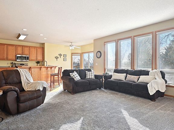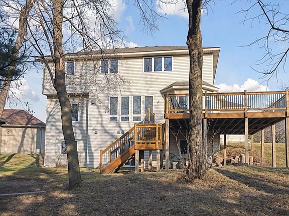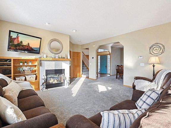 Don't miss this splendid 5BR/4BA 2-story home on a large corner hilltop lot in Elk River's Lafayette Woods neighborhood! So many wonderful living spaces over 3 finished levels. Spacious kitchen features S/S appls, pantry closet, & center island w/ breakfast bar. Enjoy both a formal dining room & a dinette area, each w/ bay window, that opens to home's newer XL deck overlooking the scenic, wooded yard & firepit. Sun-filled family room shares an elegant 2-sided gas fireplace with the adjoining den. 4 BRs on upper level w/ add'l BR suite in lower level. Primary BR features double walk-in closets & private full BA w/ spa tub. Newly finished LL is a perfect recreation space & walks out to home's backyard. All new carpet in past year + new tile in BA & laundry. 3-stall garage w/ extra-deep 3rd stall, plus add'l driveway parking space to the left of 3rd stall. Convenient location next to numerous trails, parks, & local schools. Satisfy all your outdoor, shopping & restaurant needs in minutes!