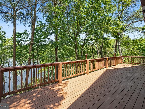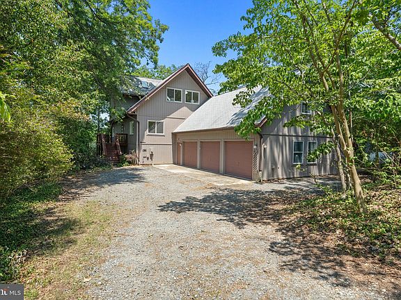 Welcome to your dream contemporary waterfront, nestled among lush trees for tons of privacy, with waterfront footage over 640 ft on Lake Lariat! This home boasts 4 bedrooms and 3 full bathrooms with a picturesque blend of luxury and nature! Make your way up the steps to the front door, soaking in an expansive wrap-around deck and water views. Enter the front door to tile flooring that brings you into the great room. STUNNING great room with vaulted ceilings and massive windows flooding the space with tons of natural lighting. Two sets of sliding glass doors in the great room leading you out to the wrap-around deck with your breathtaking views of Lake Lariat. The main level also features a kitchen with a cozy dining area, and door taking you to a charming screened-in porch, perfect for enjoying your morning coffee or serene evening dinners. You'll also find two spacious bedrooms, a convenient coat closet, and a full bathroom on this level. Head to the upper level where the large loft primary bedroom awaits. This space includes a sitting area, an attached primary bath, and a generous walk-in closet! Bring the party to the lower level which features an open rec room with another sliding glass door leading to the covered lower deck. This level also has an additional room that can be used as the 4th bedroom, full bathroom, laundry room, bonus room with built-in cabinetry, and a utility room great for additional storage, and connecting to the oversized 3-car garage. Above the garage, a finished upper-level loft providing even more storage space!!!! The storage options are endless at this home! But wait… there’s more! Step outside and stroll down your own private pier to access the Lake, perfect for fishing, kayaking, paddle boarding, and more. Located just a 10-minute drive from Solomons Island and within walking distance to the community beach, playground, and other amenities. This home offers the perfect balance of peaceful seclusion, waterfront living, and convenient access to local attractions. Don't miss the opportunity to make this home your own!