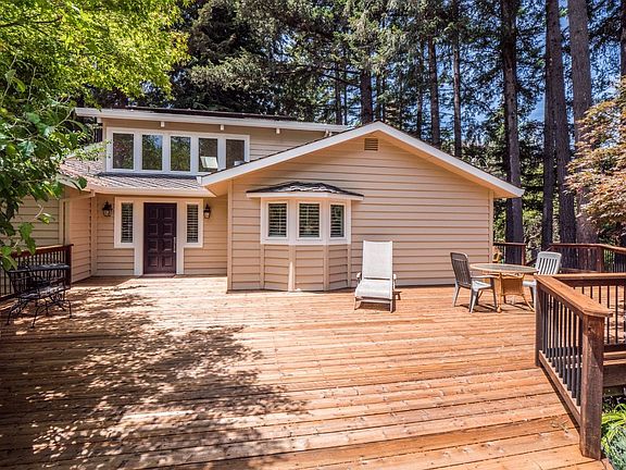 An elegant split-level home on 3. 3 acres of usable land. Private paved driveway with a wrought iron gate insures privacy and security and leads to a large detached 2-car garage. Property is very useable and did have horses at one time. There is an upper area all flat and a meadow at the front of the property. Home is beautifully appointed and in great shape. Remodeled chef's kitchen, tastefully remodeled bathrooms with tile and granite with a spa tub and walk-in shower. Lovely light hardwood flooring and lots of windows and French doors bring nature inside. Seller has installed solar panels, there is a generator and there is a private well that supplies ample water and that tastes great, too!