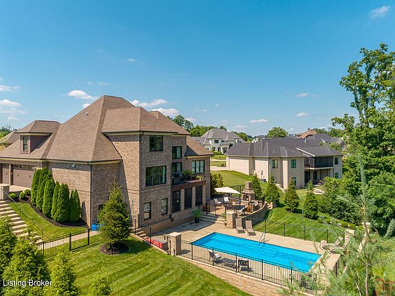 Located in scenic Poplar Woods, the stunning conservation development tucked within rolling acres of Oldham County countryside, this timeless two story home offers the opportunity to own a like new custom-built home without waiting on the construction, allowing homeowners to immediately begin taking advantage of the award-winning North Oldham school district and surrounding community. Buyers will appreciate this completely move-in ready retreat and the improvements invested by the current owners, including an extensive retaining wall addition in the backyard, new stainless steel Monogram appliances, heated pool, custom painting, custom hardwares, and custom drapery throughout the home. With a fully equipped walkout basement, convenient 5-bedroom layout, and tiered outdoor entertaining areas including patio with stone fireplace, screened porch with built-in grilling station, lofted deck with brand-new gas line for easy entertaining, and stunning, private pool backing to mature trees, this home has been thoughtfully designed and beautifully executed to accommodate an incredible range of buyer needs. Guests are first welcomed into the bright two-story foyer with French door entry and sleek hardwood floors that continue throughout the first floor. To the right, a spacious office with arched picture window, wainscoting, and handsome built-ins offers a quiet retreat for any homeowner. The first floor opens into the home's soaring great room featuring tiered picture windows, marbled fireplace with elegant floor-to-ceiling casing, and elegant bookshelves. Through stunning arched entryways, the first floor folds into the heart of the home, an open concept living and dining space centered on the home's gourmet kitchen. With new stainless steel appliances and gas range cooktop, entertaining is made easy. Offering floor-to-ceiling custom cabinetry, beautiful granite countertops, designer backsplash, eat-in island, and walk-in pantry, this kitchen has been designed to impress at first sight. A cozy hearth room with fireplace and windowed breakfast room with access to the entertaining deck complete this stunning space. The opposite wing of the home features a gorgeous primary suite with vaulted ceiling detail, oversize windows overlooking the private treed backyard, and a luxurious primary bathroom offering dual vanities, soaking tub, large walk-in shower, and custom walk-in closet with premier built-ins and storage area. The first floor is complete with a powder room, laundry room, and attached 3-car garage. The second floor begins with an oversize loft area, perfect for a play space or study spot. The floor continues with a spacious guest suite with bright windows, large walk-in closet, and en-suite bath. Two gracious bedrooms with large closets and shared Jack-and-Jill bath complete the level. The finished walkout basement has been designed for spending time with family and friends, featuring family room and columned wet bar with oversize eat-in island, full-size refrigerator, wine shelf, and new icemaker. The lower level continues with a windowed exercise or play room, stylish full bath, spacious bedroom, and plenty of room for additional storage. The home's exterior is as impressive as its interior, offering nearly an acre of pristine entertaining and green space, new fencing, mature trees, and brand new retaining wall, making the backyard extend more than ever. Whether overlooking the stunning tree line from the towering entertaining deck, swimming in the newly heated pool, or enjoying the stone paver patio with custom-built outdoor fireplace, entertaining has been made effortless. Conveniently located just minutes from Creasey Mahan Nature Preserve and Park, Hermitage Farm's renowned Barn8 restaurant, Francis Parker's Goshen campus, and the restaurants, businesses, and expressways of Prospect, this home is not to be missed.