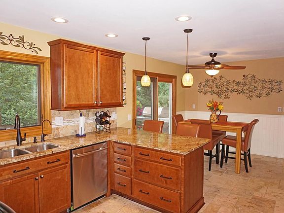 Great location across from Hiking/Biking trail. Close to shopping, parks, and more. Park like setting, low maintenance, naturalized, private. Completely remodeled kitchen, maple cabinets, granite, stainless steel appliances, and all new lighting. Both baths completely remodeled. Beautiful sun room with southeast exposure overlooks landscaped yard and new deck. Six panel doors, new woodwork, ceiling fans throughout, tile floors, and so much more. Your own oasis close to all the city has to offer and yet in a suburban setting.