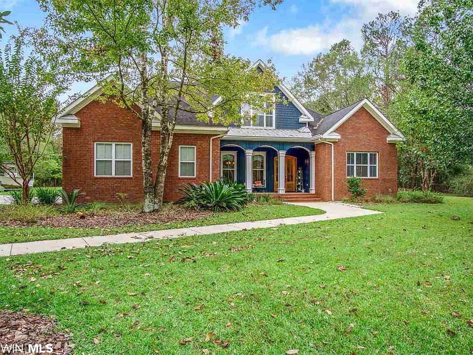 Don't miss out on this secluded home in Fairhope near Fish River on almost 1.7 acres!! This gorgeous CUSTOM build has an open floor plan perfect for entertaining and family gatherings. The kitchen is a chef's dream featuring a 5 burner gas cooktop with a vegetable sink conveniently located next to it, custom built wooden cabinets with a built in wine rack, gorgeous granite counter tops, breakfast bar, stainless steel GE appliances and a walk in pantry. Keeping room off the kitchen has a stone fireplace and opens up to the back deck. First floor master bedroom is oversized with a sitting area that also opens up to the back deck. Double vanity in master bath with granite countertops will make getting ready a breeze! Office on the first floor is a great sized bonus space! Entry near garage features a built in bench with hooks for backpack storage along with drawers and cabinets for any other storage needs. Upstairs you will find 3 bedrooms and 2 bathrooms along with an oversized rec room with built in cabinets. As amazing as the inside of this home is, the outside is sure to wow you just as much! Living oaks line the backyard, nice sized covered back porch that is extended by a wooden patio is an entertainer's dream. Back yard is level and has plenty of space for your kids to enjoy! Front porch is the perfect size for a few rocking chairs. Boat lovers dream- short distance to the Honey Road boat launch & Big Daddy's, and ample space on property for storing a boat/trailer!! Set up your private showing today, this one is sure to go quickly at this price!