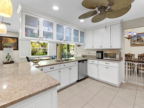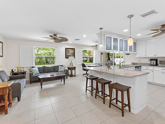 Gorgeous home situated on a huge oversized corner lot with privacy fence and mature fruit trees including banana, papaya, guava, mulberry and cherry trees. Many features include modern updated kitchen with quartz countertops, SS appliances and white cabinets, hurricane impact windows and sliding doors, freshly painted exterior, new engineered hardwood flooring in master bedroom & huge walk in closet. Wide open floor plan that is great for entertaining. Spacious living room and formal dining. Large screened covered patio that is perfect for cookouts. Low HOA fees and community tennis court/pickleball. Excellent ''A'' rated schools