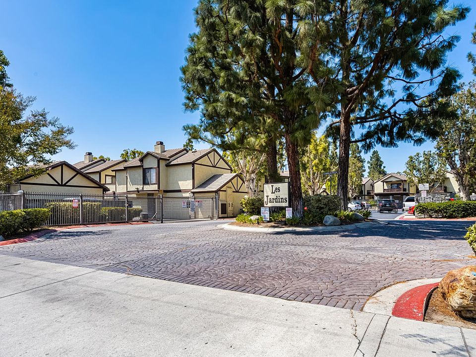 A light, bright and beautiful 2 bed/2 bath opportunity in Garden Grove. Welcome to Les Jardin, a picturesque community dotted with trails and greenery. Boasting numerous upgrades from newly installed wood flooring to pre-wired surround sound speakers. Interior laundry allows for maximum privacy and convenience, while upgraded recessed lighting, bright colors and expansive windows allow for abundant natural light. Featuring plenty of storage space, including walk-in master bedroom closet (and en suite bath!). An open kitchen and floorplan are perfect for entertaining, or step out onto one of two private patios (both with views of a sparkling pool) and enjoy dining under the legendary Orange County sunsets. Only minutes from top-tier shopping, dining and entertainment at South Coast Plaza and the Outlets at Orange. Enjoy all the best Orange County has to offer. No smoking, renter responsible for utilities.