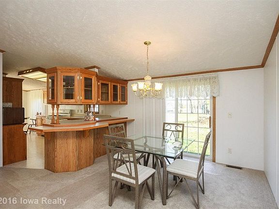 Just south of Martensdale in the small town of Wick. Less than 30 mins to Airport or Jordon Creek Mall. Well cared for manufactured home on piers less than one block off pavement. Ready to move in. Large kitchen with lots of cabinets and counter space. Small dining area in kitchen and formal dining area with slider to the back. Big master suite with full bath including garden tub. Nice lot with room to add a nice big garage. Another almost 1/2 acre lot next door can be purchased if you want to build a big building. All appliances including washer and dryer.