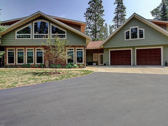 Spectacular home w/ character on 3+ acres. Paved driveway & landscaping. A grand entrance leads into the living area. The kitchen has a 13 foot island, beautiful cabinetry & lighted displays above the cabinets. Main floor laundry w/ 3/4 bath. The master bedroom has beautiful doors, unique trey ceilings, an extra large walk-in closet, a private bath w/ a tiled walk-in shower, double sink & tub. Up the grand entrance stairs is a guest room w/ stunning windows, wood floors & a private bath. Main floor has a 2nd kitchen w/ storage, a hobby room that could also be an office/sleeping area. The shop has above storage, high ceilings & a sink area. Could easily be a recreation room. The attached garage is nicely finished & insulated, has a sink & cabinets, storage, a dog shower w/ a heater, & airtight garage doors. Above the garage is a one bedroom apartment. Full kitchen, private bath & large windows. Up the paved drive is an oversized garage. With so much beauty you have to see it in person.