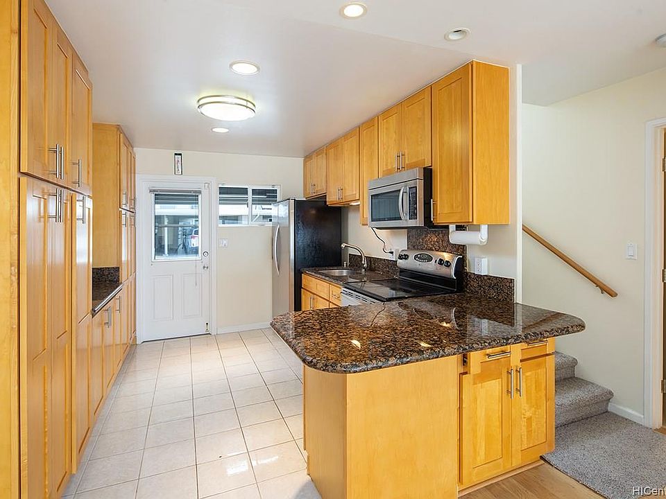 Rarely available 2 bdr/2 bth split level townhome in the Kahala area. Open kitchen leading out to a spacious living room and private courtyard. New carpet and upgraded kitchen and bathroom. Window AC and washer/dryer on property. Includes 1 covered carport pkg stall. Prime location right across the street from Kahala Mall, schools, restaurants, and freeway access. No pets.