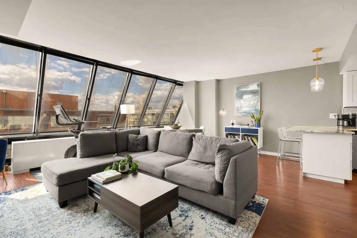 Welcome to 1245 13th St NW #1012 - Sun soaked penthouse level one bedroom one bathroom residence featuring west facing floor-to-ceiling slanted windows. Meticulously maintained turn-key property with an open concept layout that delivers just the right amount of space for living, working and entertaining. Rooftop deck offers breathtaking DC views ...