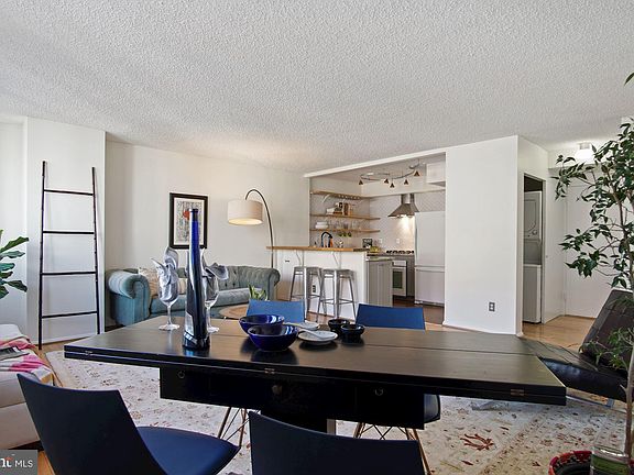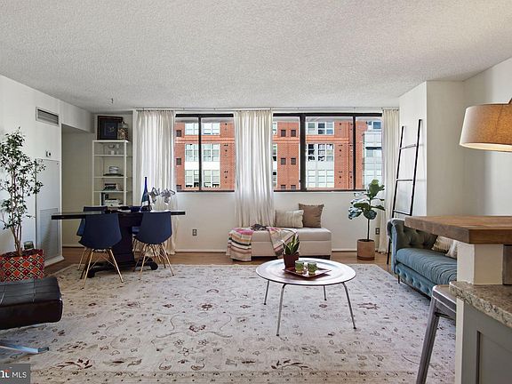 PRIME LOGAN CIRCLE LOCATION-- Don't miss this 644 SF freshly painted one bedroom, one bath sun-flooded home on a high floor with a beautifully renovated kitchen with open shelving, butcher block counter, farmhouse sink, range hood, tiled backsplash and modern gray cabinets that opens to the dining and living area featuring oversized windows with stunning city views and gleaming hardwood floors. The renovated bathroom features new wood plank tile and tiled tub while the generous bedroom features new carpet. Rounding out this lovely unit are a shopper's dream closets built out to maximize every inch in both bedroom and hallway, along with a 2-year-old full-size washer and dryer in the unit. As you exit, be sure to head up to one of the city's best roof decks just redone 3 years ago and with 360 views of DC. Building amenities include a lovely oasis common area courtyard, 2 elevators, locked package drop, on-site Super, security and a condo fee that includes all utilities. With a walk score of 97, just steps from Logan Circle, 14th Street, Dupont Circle, Shaw, Metro Center, and City Center this home offers the very best of city living! No rental restrictions!