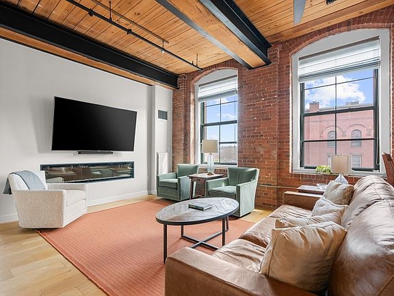 Ideally positioned in Lower Mills sits a 2+ Bed, 2 Bath, spanning nearly 1700 SF with 2 parking spaces. Originally home to the Baker Chocolate Factory, this unit has been meticulously updated & maintained while preserving the building's historic charm. This corner unit features oversized windows, soaring ceilings, wide plank floors & exposed brick. The renovated kitchen is a chef's delight with sleek white cabinetry, breakfast bar, pantry & wine fridge. The kitchen opens seamlessly to the spacious living & dining area with built-in fireplace & exposed beams. The primary suite features a walk-in closet & en-suite bath with both a shower & soaking tub. A second bedroom & second full bath are perfectly situated on the opposite side of the unit. The large den off the entryway is ideal for a home office, nursery or guest room. In-unit laundry & private storage included. Building amenities include a gym, indoor pool & hot tub, plus a terrace & grills overlooking the Neponset River