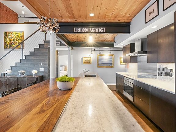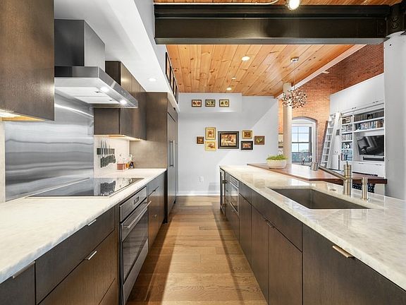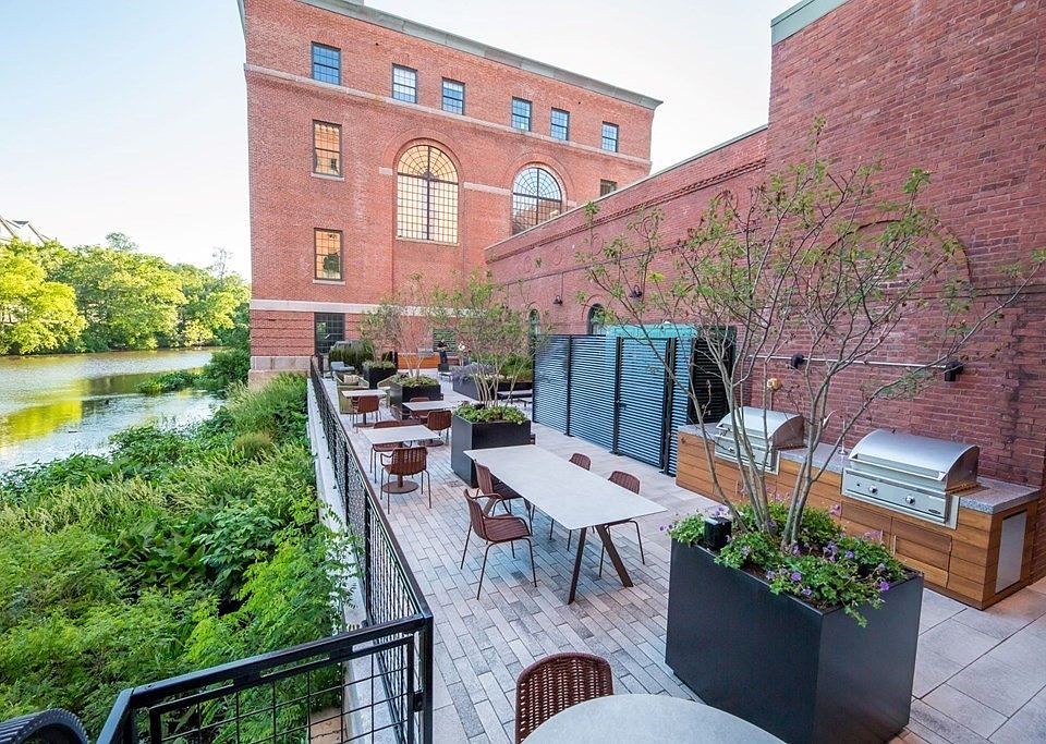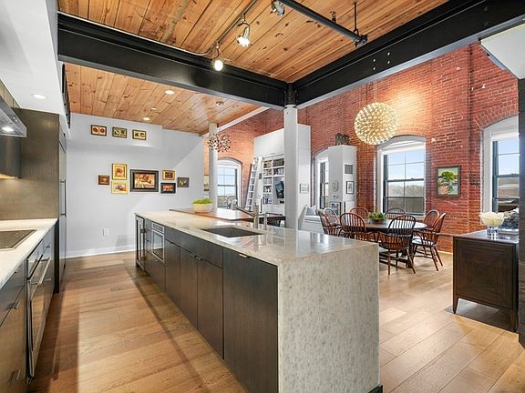 Iconic loft in Baker Square high above the Neponset River offers city living with the advantage of suburban escapes. Boston firm Embarc Design brought this south and east facing penthouse loft to life with complete remodel to maximize light, views and comfort. Bespoke kitchen with SubZero fridge and wine storage, Wolf oven/cooktop, 2 Bosch dishwashers and 13’ island commands the space. Expansive living area capitalizes on 18’ ceilings with dramatic, abundant cabinetry. Owners’ suite maintains a sunny disposition with luxury bath, radiant heat, steam shower, storage. Mezzanine level offers office area, second luxury bedroom suite, a study/guest suite, and rare in-unit storage rooms. Cozy den, large mudroom storage, laundry/pantry room are all rare city offerings. Exposed brick and beams underscore the loft experience. Pet friendly, new outdoor riverside terrace with gas grills, indoor lap/recreational pool, gym. Close to trolley, bike trail, restaurants, the Blue Hills, Milton Academy.
