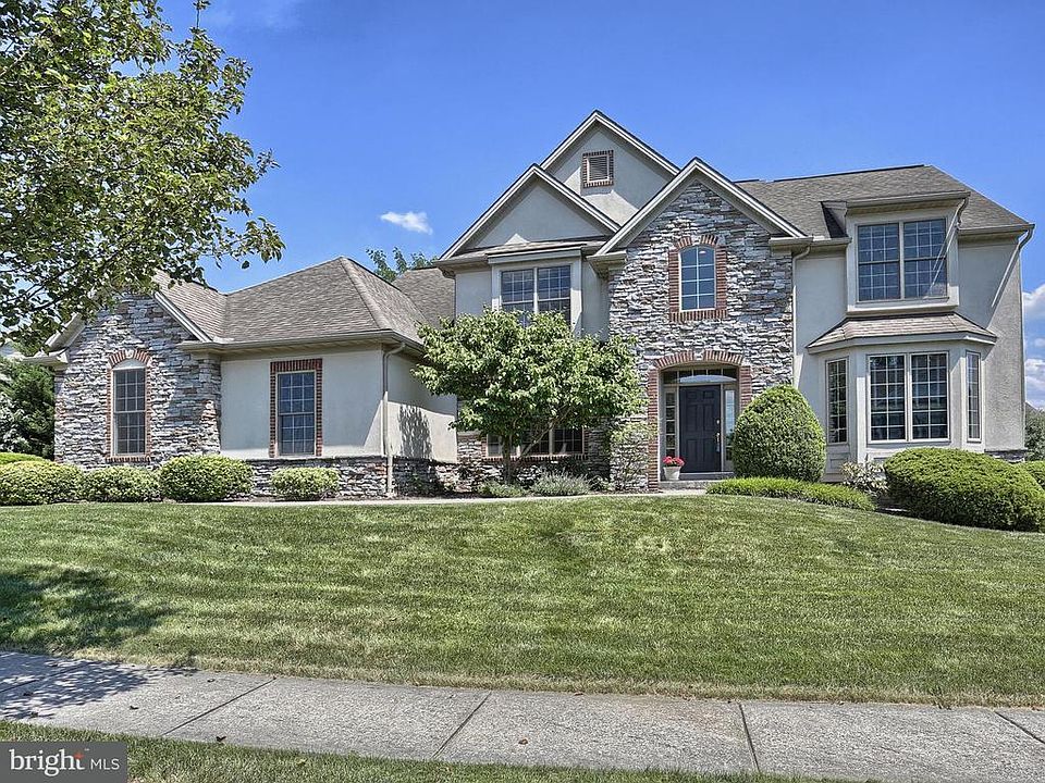Be prepared to fall in love! Beautiful Derry Twp home in a great neighborhood just minutes from Hershey Med Center w/loads of upgrades & special features. New hardwood floors thru-out most of 1st floor. Great open floorplan for optimum function. Dream KIT features 10' ceiling, granite counters, tile backsplash, large work island, loads of cabinet space, pantry & upgraded SS appliances. KIT flows into sun splashed breakfast rm w/tile floor and cathedral ceiling and also open to FAM RM w/handsome stone gas FRPL, double tray high ceiling and built-ins. Ideal home for entertaining. Large mud rm w/tile floors and cubbies. Den/office on 1st floor could be used as a BR. MBR suite features tray ceiling w/crown molding, 2 large W-I closets & luxury bath w/soaking tub, tile shower and double vanity. So much to see and appreciate here. Super convenient location. Add this delightful home to your must see list!
