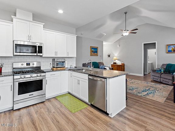 Enjoy the quieter side of Wilmington in this dazzling home. Entertain family and friends with a back patio, privacy fence, and one of the largest backyard in the neighborhood. When the warm weather rolls around, enjoy the property's five crepe myrtles, two blueberry bushes, two fig trees, grapevine, and bird feeders. There's even front irrigation for this gardener's paradise! The house boasts tons of natural lighting, but the windows are fitted with Levolor cordless blinds if you need some shade! Special features include a gas range, granite countertops, stunning open concept, a Samsung washer and dryer, and a fireplace for your cozy nights in. The primary suite has a tray ceiling, walk-in closet, and a double vanity. Don't miss out on the opportunity to be 20 minutes from the shores of Wrightsville Beach or the bustling Downtown nightlife!