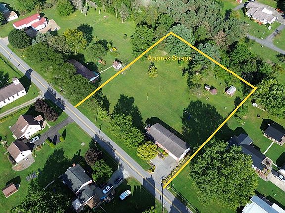 Featuring a hard-to-find large enough lot that could be subdivided into another buildable lot that has access to public water & sewer (tap in fee required per twp). Situated on 1.42 acres is this lovely brick ranch style home with a 2 car attached garage that leads into an extra family room, eat in kitchen, front living room with a fireplace, three bedrooms and a second full bath. Beautiful hardwood flooring. There is a floor plan drawing in the pictures. Check out the aerial view too! Outlet hook up in the yard for a camper. Room to put a chicken house as well.