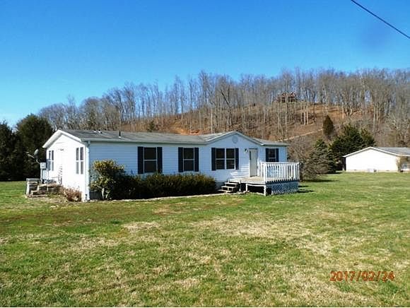 "Country Setting" With gorgeous mountains! Nothing fancy just right for starter home. Doublewide style home with a permanent foundation nestled on .58 acre level lot. Cozy floor plan with a nice size living room, dining room, with galley style kitchen with abundance of cabinets, range, dishwasher, refrigerator, breakfast area and access to the laundry room. Split bedroom plan with big Master bedroom and bath, 2 bedroom with bath grouped around a center hall. Additional features include front deck, heat pump, outbuilding, great country location. Hurry this one is priced to sell.
