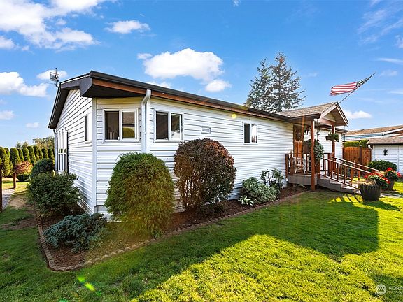 THINK Condo. BUT, This is BETTER than a Condo! Better Price! You own the home and yet have a whole quiet, mountain view lot to garden, beautify & ENJOY. This wonderfully 'refreshed' home in a Popular Lynden Manufactured Park will not disappoint. SUPER quiet! New roof, updated furnace, windows, new deck that overlooks a bright and sunny, spacious lot and the most extrordinay views of Mt Baker and the Twin Sisters in the park. Not to mention, the ambient water feature. This warm and inviting home has 2 generous bedrooms, walk in closets and 2 full baths, a spacious open kitchen with an abundance of cabinets and counter spaces. All appliances included. Finanncing available. Buyer to verify. NO age restrictions in the park. Close to schools.
