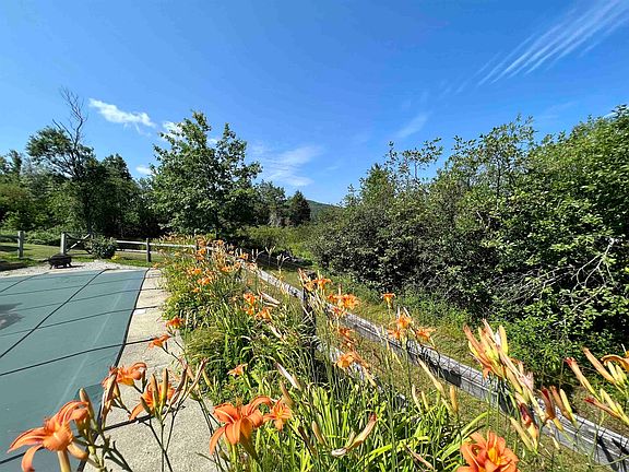 This well maintained home borders Burbee Pond in a serene country setting with wildlife and beautiful views. A great spot to relax in the Vermont outdoors with a heated outdoor pool, large deck with a hot tub, sprawling lawn, beautiful gardens, blueberry bushes, apple trees and a greenhouse for growing and equipped with electric and water. New upgrades to the four bedroom home include heat pumps, renovated bathrooms, new flooring and appliances, new pressure tank and insulated attic and basement. The two car garage is fully insulated and heated. 7.2 miles from Magic Mtn and Lowell Lake. This home is a must see!