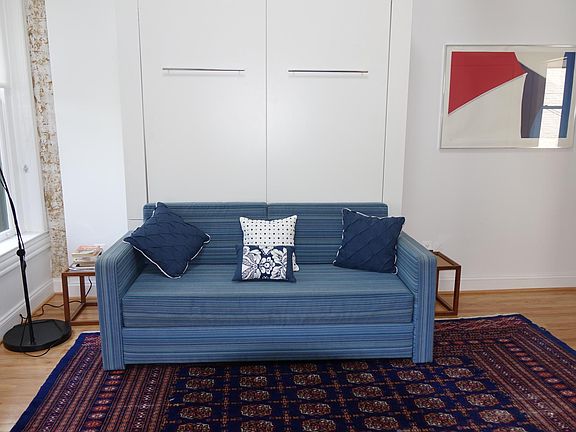 Charming, gorgeous one bedroom furnished apartment in a three unit building within walking distance of the US Capitol. Pleasant view of the park across the street. Four plus blocks (a nine-minute walk) to Eastern Market Metro Station or the Potomac Avenue Metro Station. Nicely furnished living room dining room with up-to-date kitchen with granite countertops. High living room ceilings with a sofa in front of a queen size Murphy bed. A skylight in the living room keeps the room bright and cheery all the time. Bedroom with twin beds. Marble bathroom with a bathtub and shower. Stainless steel appliances. Ceiling fans. Sprinkler system. Supplied with linens and dishes and silverware. Professionally cleaned before you arrive with high touch surfaces disinfected. Can sleep four but would prefer one or two people. Swimming pool access in the summer. Central Air Conditioning, Direct TV & Wifi plus electricity, ADT alarm system and water included. Available January 5. Easy parking on the street with parking permit. Garage space available for a bike. No smoking. Central Air conditioning, direct TV & Wifi and water paid for by the owner