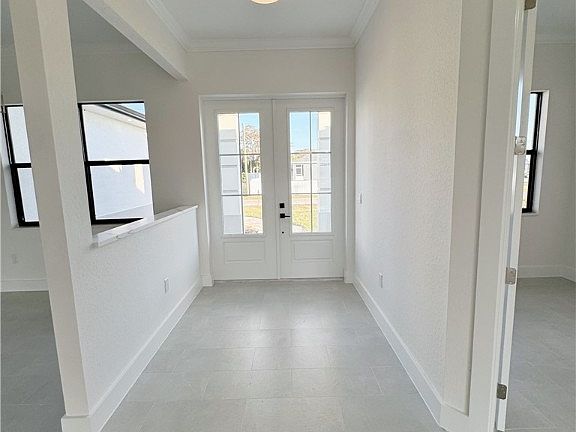 Center islandImpact windows and doorsCustom showerCrown moldingStainless steel appliancesExpansive paver driveway