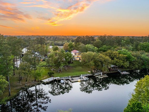 Nestled on a half an acre, this stunning 3-bedroom, 3-bathroom, and 2-half-bath home offers a perfect blend of luxury and comfort. Multiple back porches provide expansive outdoor living spaces, perfect for enjoying the breathtaking river views and lush landscape. The open-concept living and dining areas create an ideal flow for entertaining family and friends, while gleaming hardwood floors add warmth and elegance throughout. Large windows flood the space with natural light, offering picturesque views of the surrounding wildlife from every room.The fully renovated kitchen is a chef's dream, featuring sleek marble countertops, stainless steel appliances, custom cabinetry, and an oversized island with pendant lighting, perfect for extra seating. The spacious master suite is atrue retreat, complete with a cozy sitting area, a walk-in closet, and a spa-like ensuite with dual marble vanities. French doors open directly to the outdoor deck, where you can enjoy tranquil river vistas. The home also includes a generous 3-car garage, an elevator that provides easy access to all levels, and a large riverside deck with two floating boat docks for water enthusiasts. This remarkable home is ready for its next owners! Schedule your private showing today!
