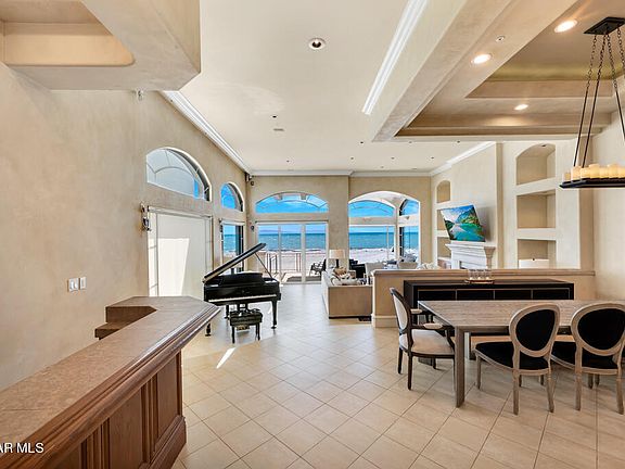 Welcome to this stunning Mandalay Beach oceanfront home with over 5,400 square feet of living on the ocean side of Capri Way! Step into the elegant glass door entry that leads you to the main level of the home with soaring ceilings bringing in abundant natural light. Wake up each morning with beautiful Island Views and listen to the waves along the surf with dolphins and whales at times. This home was made for entertaining showcasing ocean views from almost all of the primary areas in the home. The newly remodeled kitchen is complete with new high-end appliances, center island, butler's pantry, and plenty of cabinet and counter space. The dining room and living rooms are located off of the kitchen and feature a wet bar, fireplace, and sitting area overlooking the beach perfect for soaking in the sunny days and sunsets in the evening. Downstairs you will also find a bedroom with an en suite bath, and a junior guest suite that runs on its own water meter and kitchenette providing an opportunity to be a guest suite or rented if desired. The beautiful spiral staircase leads you to the spacious loft and another bedroom with an en suite bathroom. The elegant primary suite is the perfect space to unwind with stunning beach and ocean views, additional sitting areas, cozy fireplace, and deck overlooking the ocean. There is even a separate room perfect for an office, gym, or nursery, and bathroom with dual vanities, soaking tub, and steam shower. Other amenities of the home include a new roof, new air conditioning for second floor, LED lights throughout, newly redone decks, new exterior paint, whole house water filtration system, remote control drapes on the first floor, outdoor shower, and so much more! Come see why everyone is moving to Mandalay Beach of Oxnard Shores, the hidden gem between Malibu and Santa Barbara.