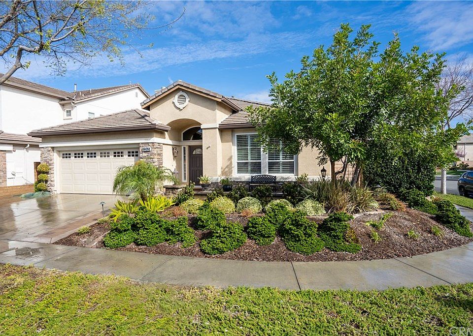 Built in 2004, this single story charmer is located in the Rosecrest Community of Placentia, this home sits on a spacious corner lot and offers great curb appeal & bright open floor plan. The exterior greets you with drought tolerant landscape and neutral exterior colors including stacked stone, custom pavers and a cozy front patio seating area. Upon entry you step in to a warm and inviting interior with an open floor plan, custom shutters and dramatic dark engineered wood flooring. This floorplan includes 3 bedrooms, 2 baths, a cozy living room w/ adjacent formal dining space. The open kitchen features new Bosch appliances, birch wood cabinets, granite counters & large island. The kitchen is open and accessible to the large family room featuring a cozy fireplace media niche and surround sound. Take the slider to the stunning back yard that offers plenty of space for entertaining & outdoor relaxation. With custom pavers, natural gas fire pit and large bbq island with granite counters and seating for 6. The covered patio offers outdoor speakers and plenty of seating space. Additional features include large pantry area, inside laundry w/ utility sink, shutters throughout, linen storage, 2 car garage w/ epoxy flooring, water softener, drought tolerant plants & synthetic grass for water conservation, holiday light outlets. This beautiful home is situated close to golf, shopping, dining & entertainment of all kinds and the highly regarded Placentia Yorba Linda School District.