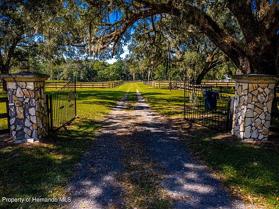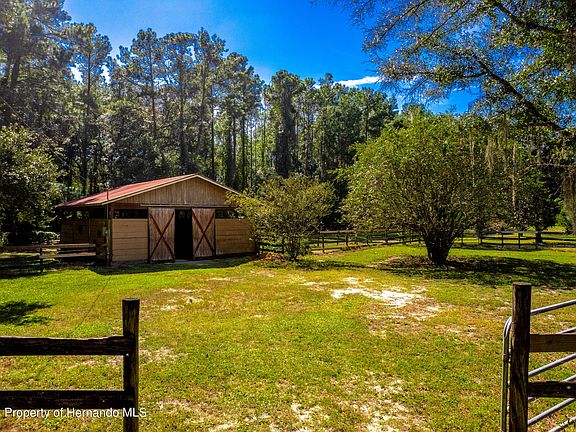 Nestled on 10 beautiful acres in Brooksville Fl, this ranch checks all the boxes! The pool home is over 3200 living sq feet and has amazing features such as, 3 very well-appointed bedrooms with a 4th large option, 3 full bathrooms, newly remodeled kitchen, a newly remodeled master bathroom, NEW ROOF, beautiful woodburning stone fireplace that is the centerpiece of the home, formal dining, large front porch and AMAZING outdoor space! The pool is open air and surrounded by pastures for private and beautiful views of the ranch The center aisle 6 still barn will cater to all equestrians. The well-structured layout, power, water, and ample storage make it a priceless addition to the ranch. There are 3 large fenced pastures to ensure plenty of grazing and rotation of the animals for proper pasture rest. Additional highlights of the ranch are: The home and barn are set substantially off the road and nestled behind a flowing creek and picturesque wooded space. Several other smaller paddocks are on the property, and the setup makes it highly functional for easy feeding and homesteading. The county has approved a subdividing of the property of 2 - 5 ac parcels or 4 - 2.5 ac parcels with is huge if you are looking for that sought-after family compound living. It has an existing 2nd well at the front of the property which is not in use at this time. The location is equally as perfect for accessing I75, US41, or the Suncoast Parkway with an easy 45-minute commute to Tampa International. Whether you are escaping the city, long for a self-sustaining life, or just need room to roam, this property is perfect for you!