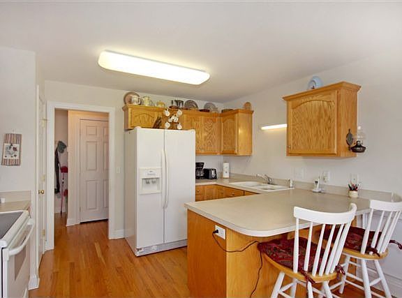 Adorable custom built 3BR 2BA ranch on flat lot with NO HOA fees. Master BR and BA large with garden tub, sep shower, 2-sink vanity and big walk-in closet. Great room with vaulted ceiling, fireplace, oak floors in kitchen/dining and lots of windows. All appliances remain incl W/D & frig! Wood cased windows, finished garage with loads of attic storage above. No house behind so backyard private.